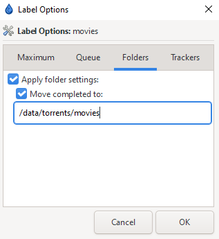 If you want torrents to be moved upon completion to a specific folder, you can specify this in Folder Options