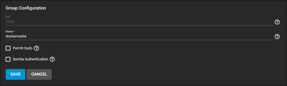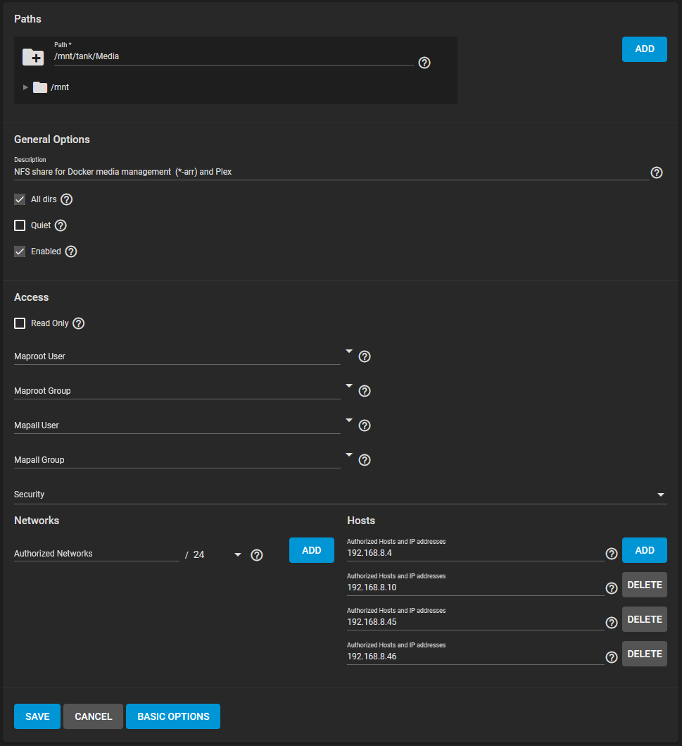 as the group name when mounting over NFS. This group should contain any of your user accounts that will be accessing the share (Starr apps, download clients, etc). It should also match the group and GID