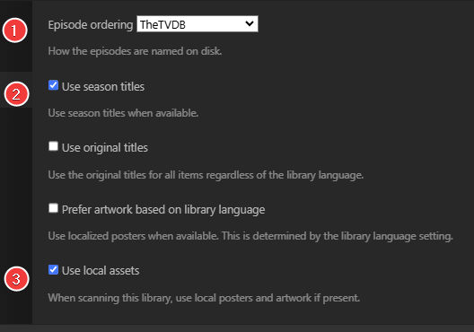 1. When scanning this library, use local posters and artwork if present. (Local subtitles files will be used whether this is enabled or not)
