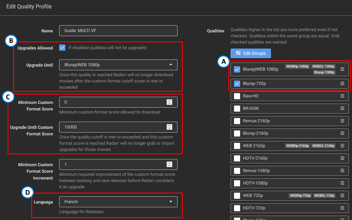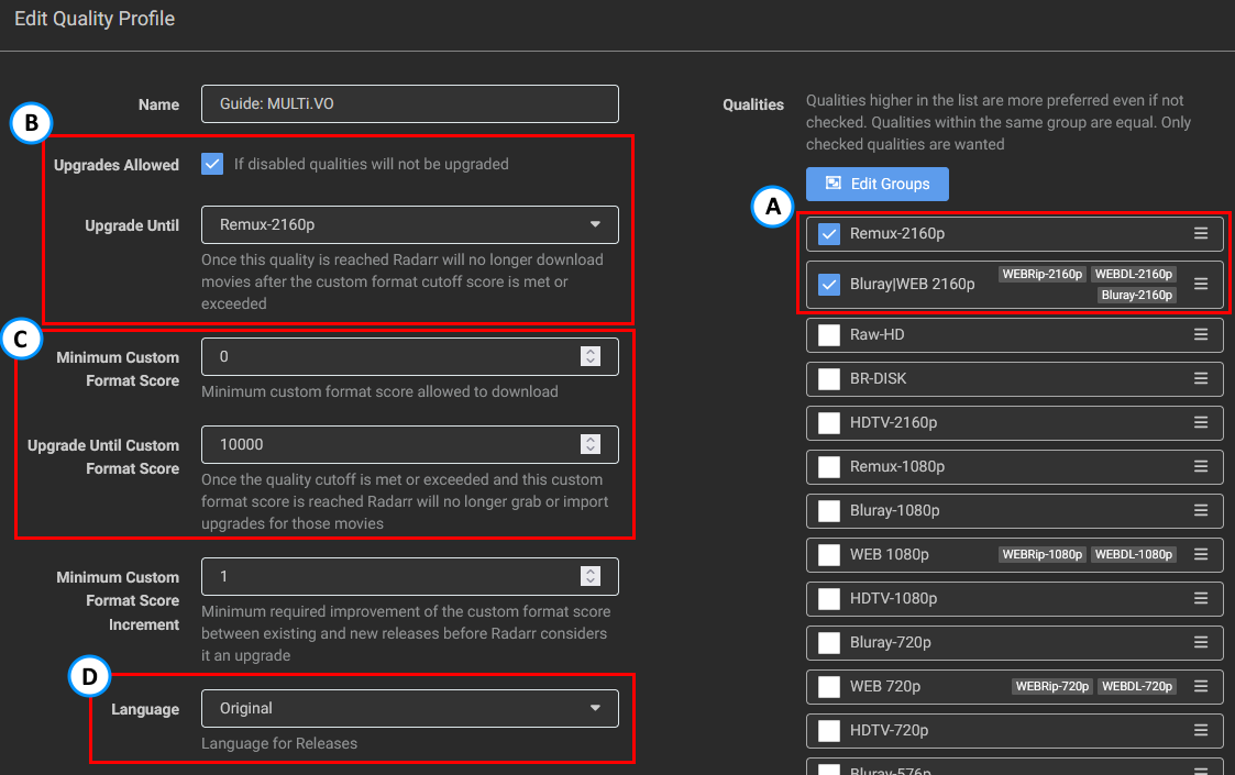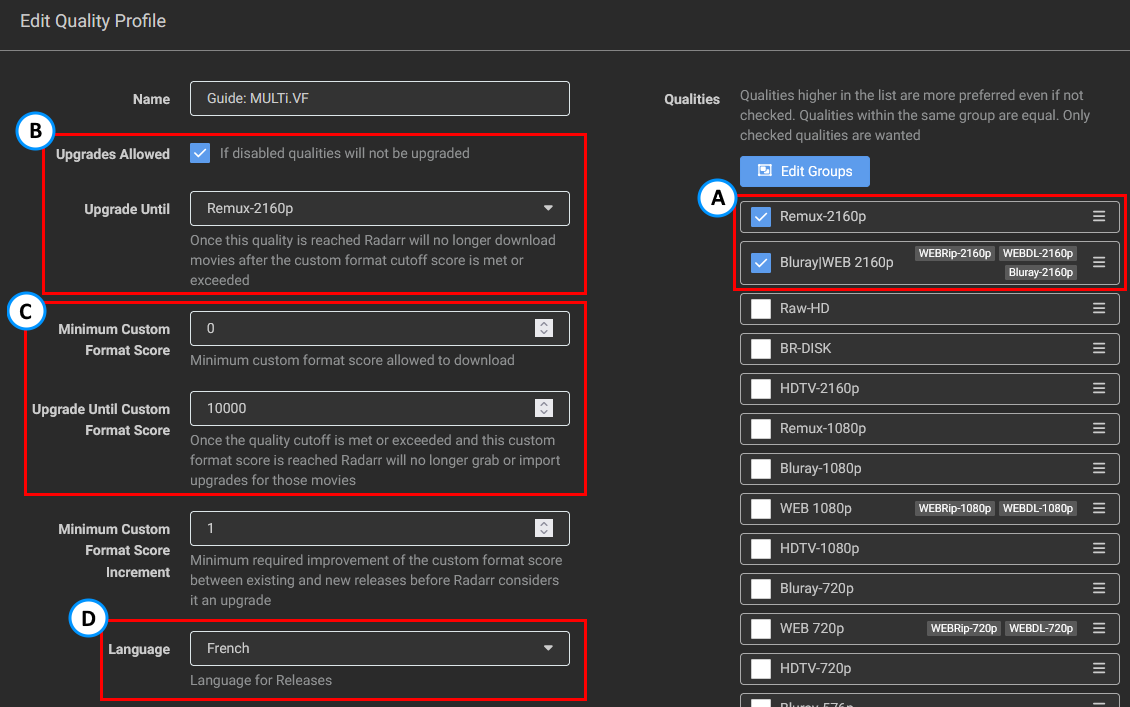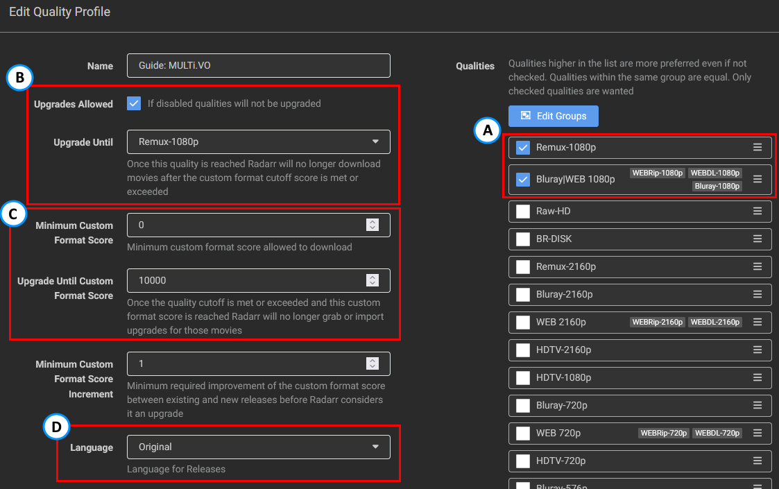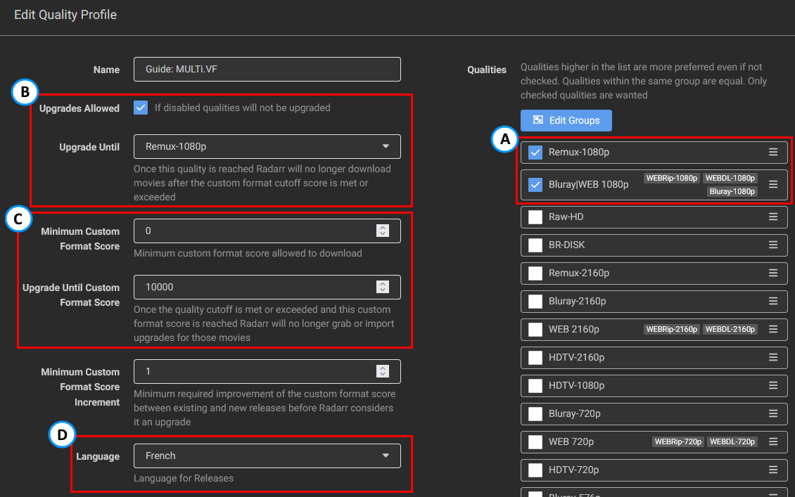 - Setting up a quality Profile to make use of the Custom Formats, as explained in How to setup Quality Profiles | Basics section.