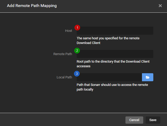 => This is the hostname or IP you set in your download client settings.Remote Path